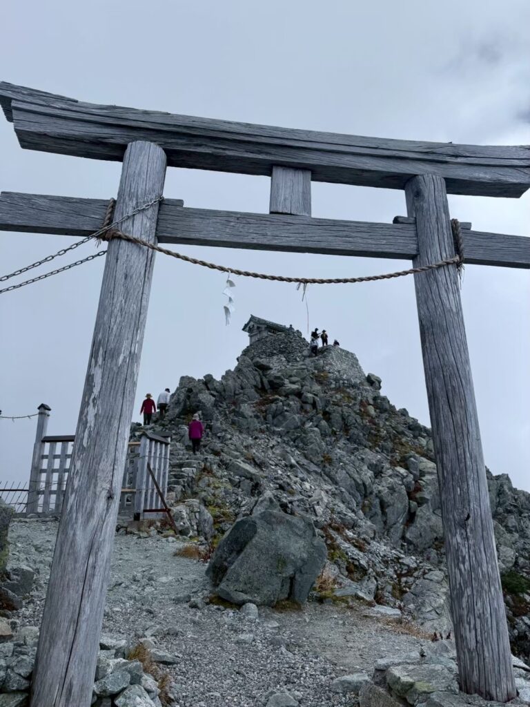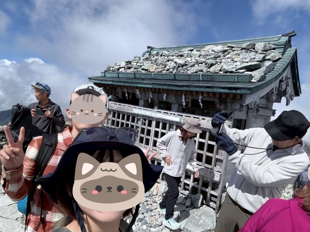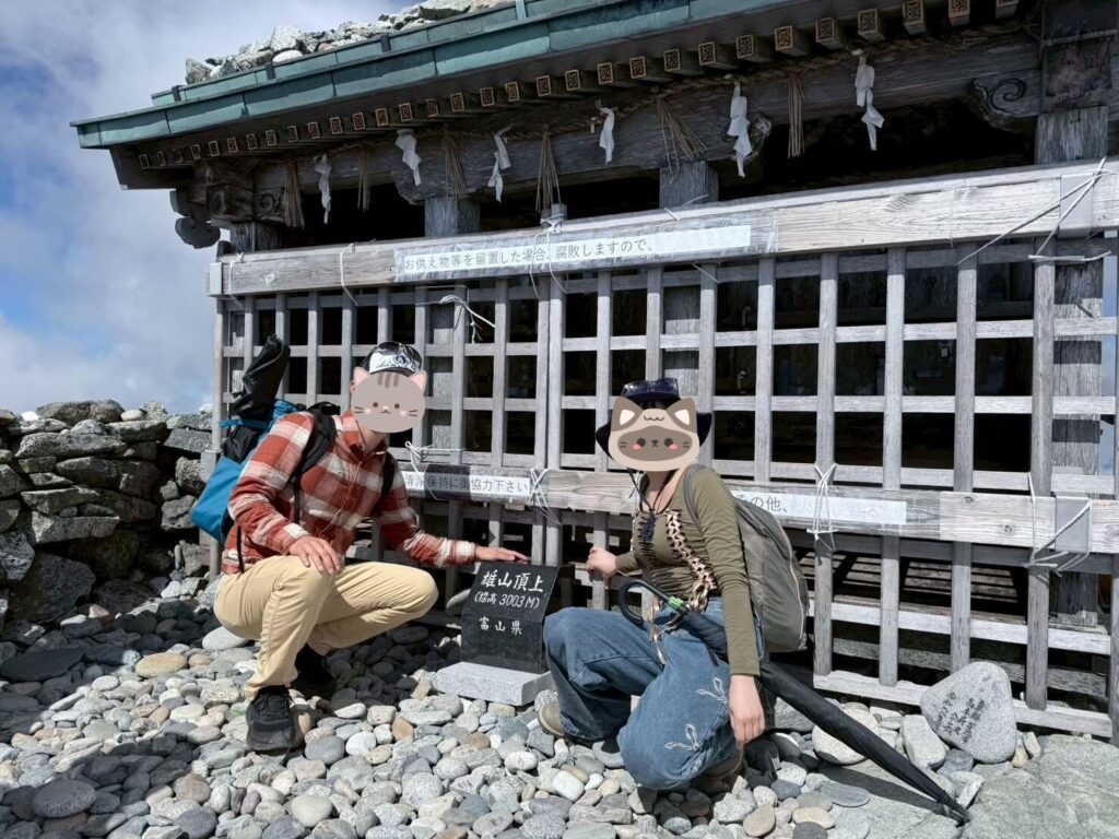約3時間半の登山を経て、ついに山頂に到着。そこに鎮座するのが、雄山神社峯本社です。立山信仰の中心的な神社で、古くから多くの修行僧や信仰者が訪れてきた聖地。山頂に立つと、その神聖さがひしひしと感じられました。